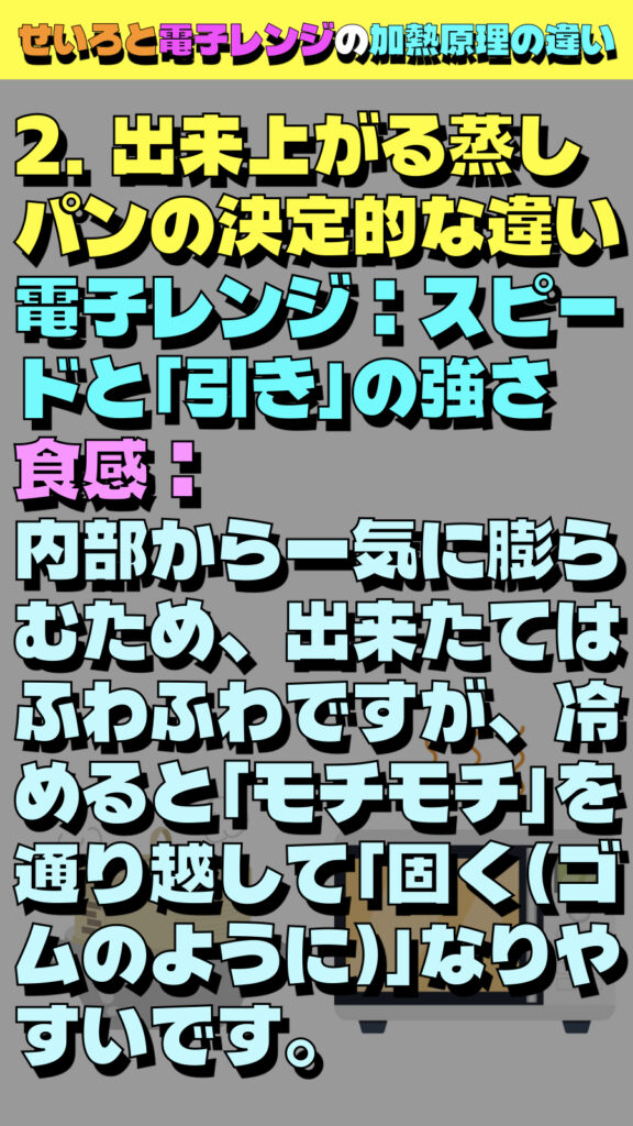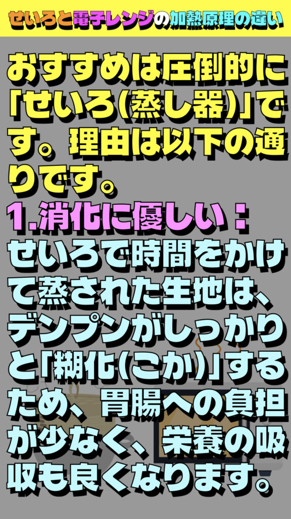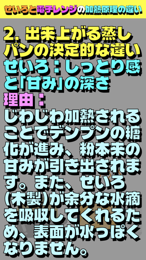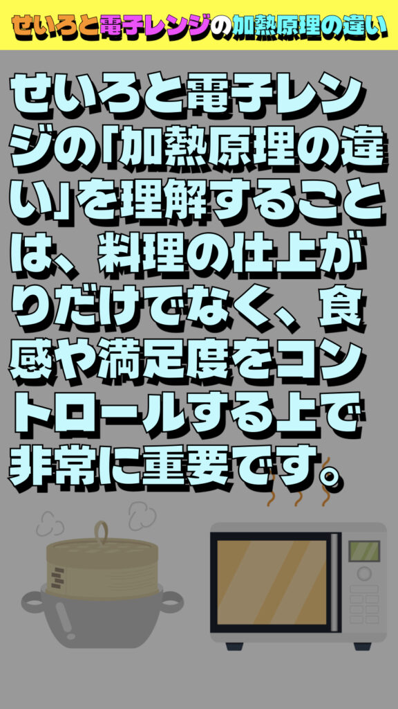 せいろと電子レンジの「加熱原理の違い」を理解することは、料理の仕上がりだけでなく、食感や満足度をコントロールする上で非常に重要です。