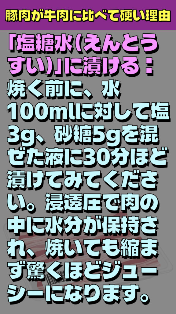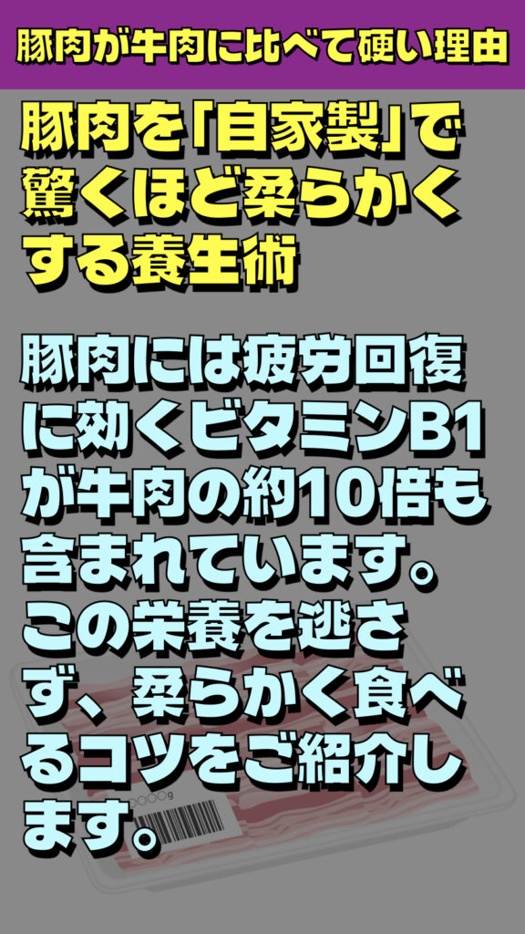 この理由を知ることで豚肉をもっと柔らかく、体に優しく仕上げられるようになります。