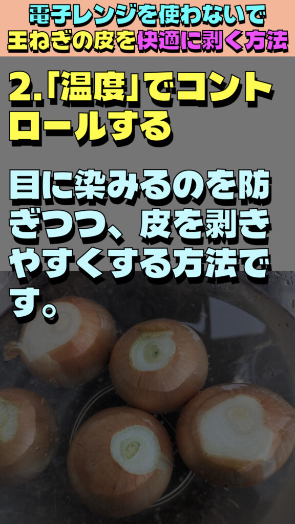 目に染みるのを防ぎつつ、皮を剥きやすくする方法です。