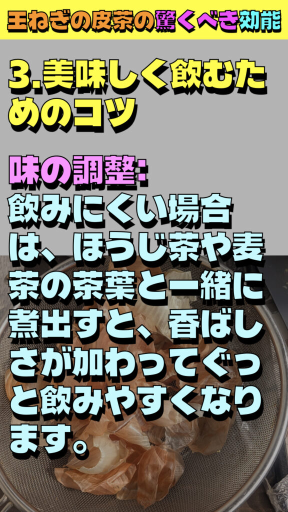 味の調整:飲みにくい場合は、ほうじ茶や麦茶の茶葉と一緒に煮出すと、香ばしさが加わってぐっと飲みやすくなります。