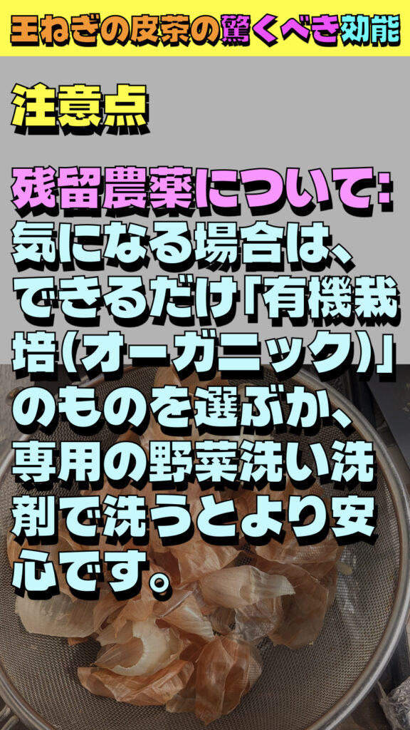 残留農薬について:気になる場合は、できるだけ「有機栽培(オーガニック)」のものを選ぶか、専用の野菜洗い洗剤で洗うとより安心です。