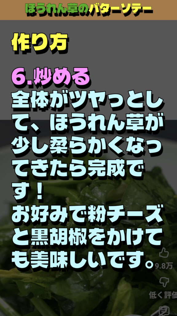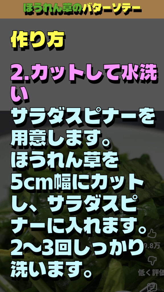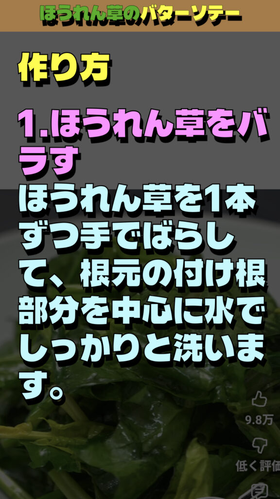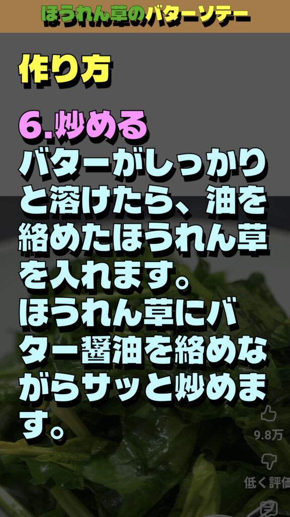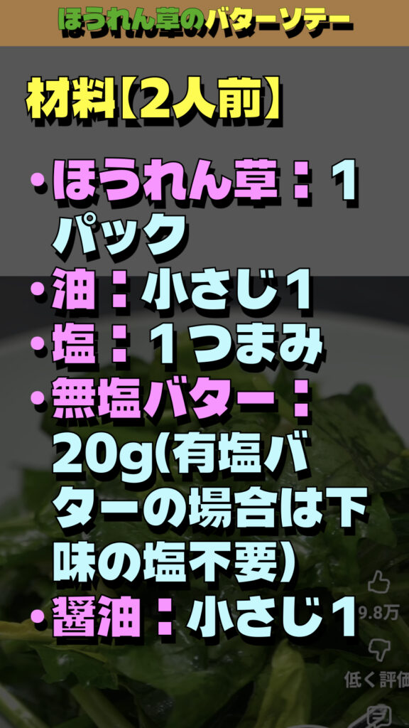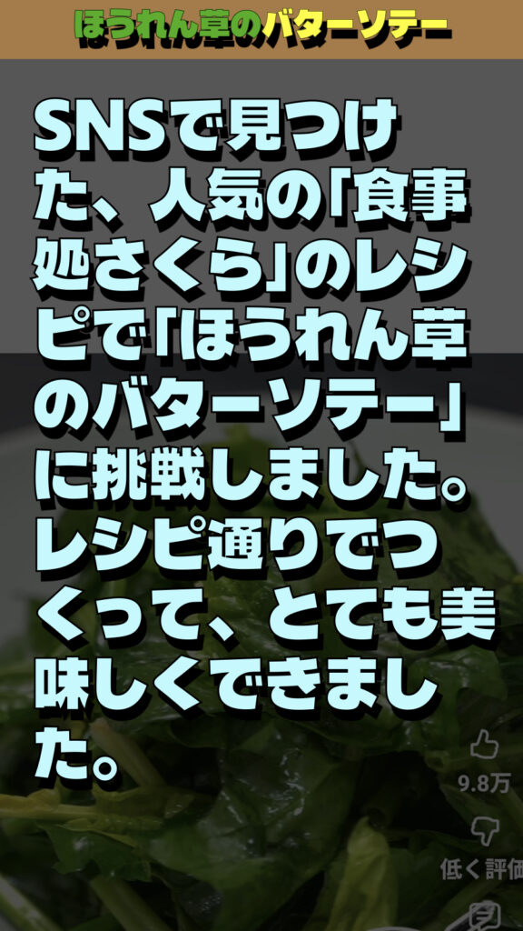 SNSで見つけた、人気の「食事処さくら」のレシピで「ほうれん草のバターソテー」に挑戦しました。