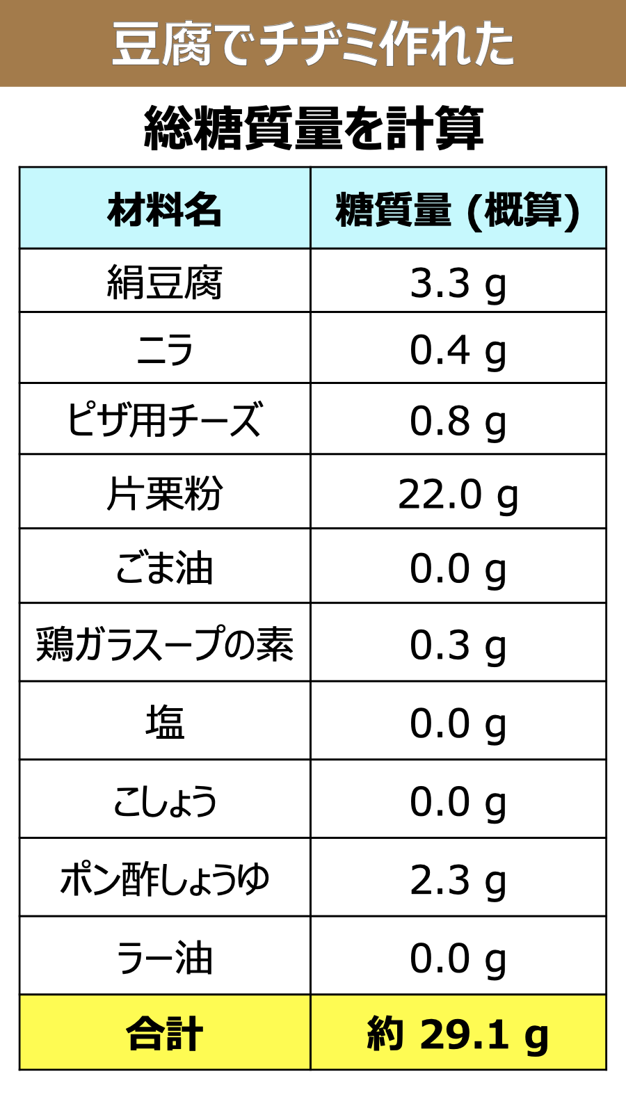 糖質量とタンパク質量の一覧表