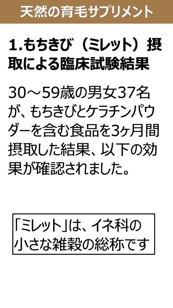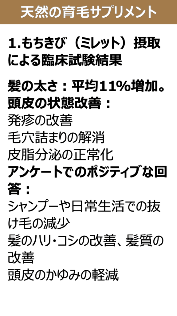 ##🌾育毛のための主食:もちきび(ミレット)の効果と活用法###1.もちきび(ミレット)摂取による臨床試験結果