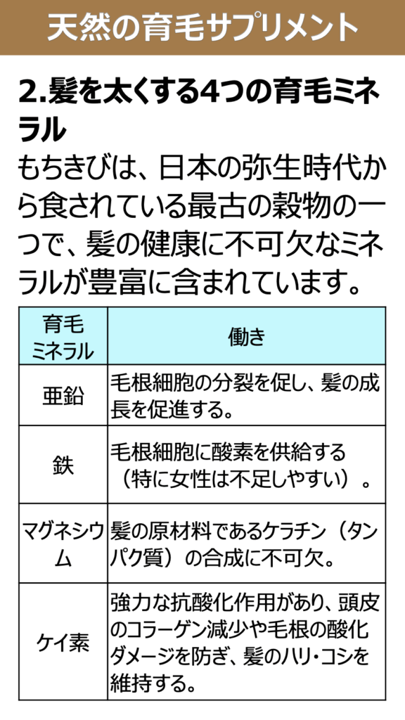 ###2.髪を太くする4つの育毛ミネラル
