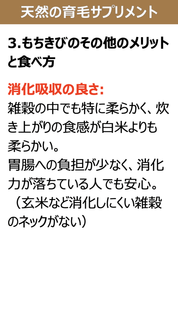 育毛に有効な「白米プラスもちきび」という主食の見直しを推奨。