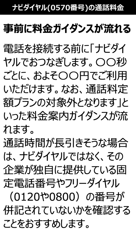 通話時間が長引きそうな場合は、ナビダイヤルではなく、