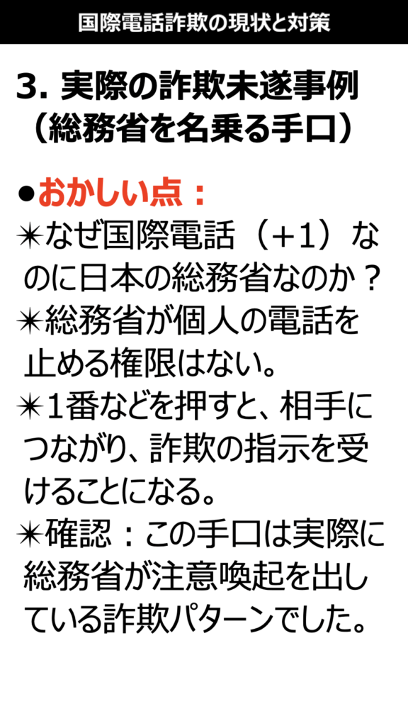 3. 実際の詐欺未遂事例(総務省を名乗る手口)