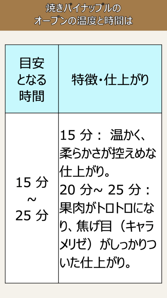 焼きパイナップルのオーブンの温度と時間 :資料