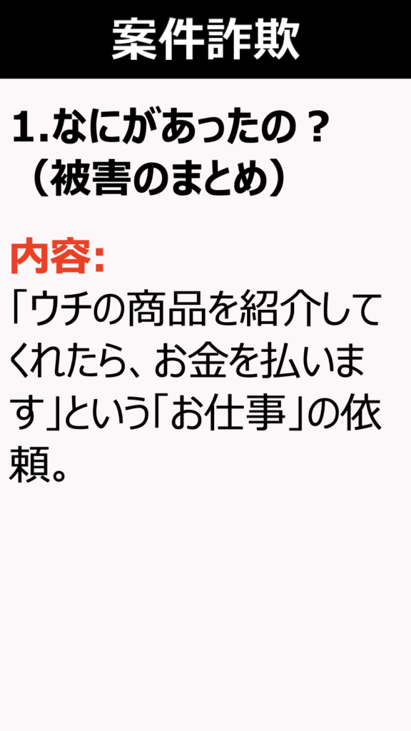 内容:「ウチの商品を紹介してくれたら、お金を払います」という「お仕事」の依頼。