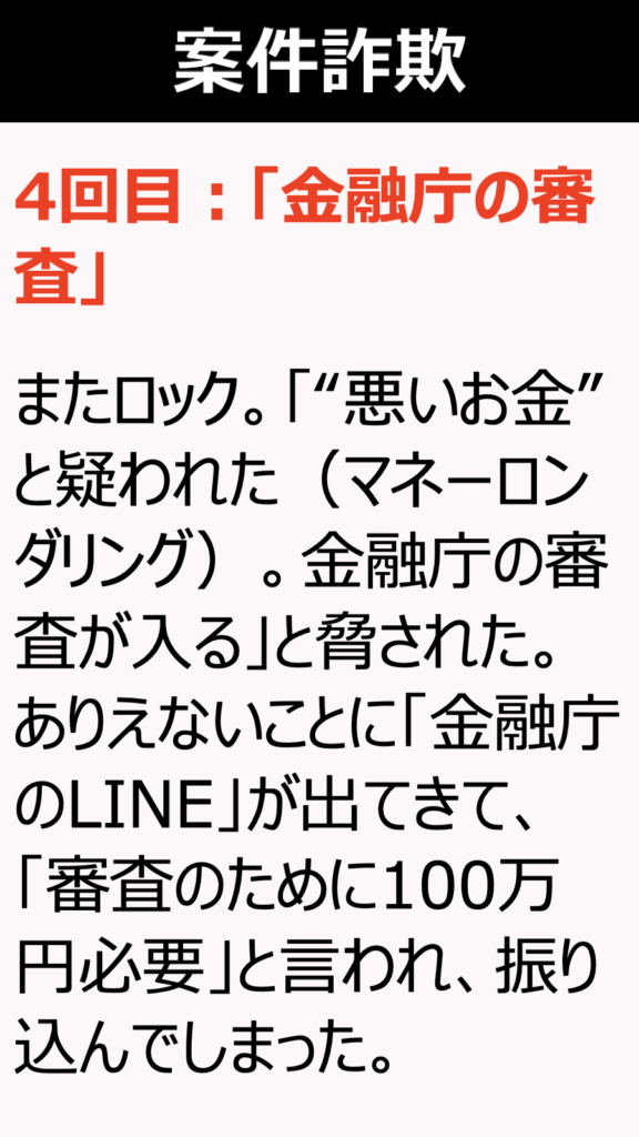 ありえないことに「金融庁のLINE」が出てきて、「審査のために100万円必要」と言われ、振り込んでしまった。