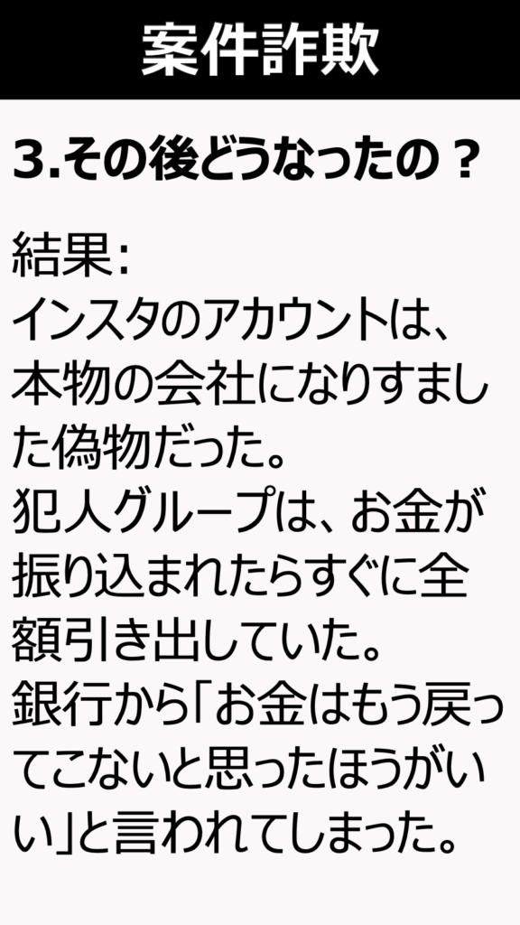 インスタのアカウントは、本物の会社になりすました偽物だった。