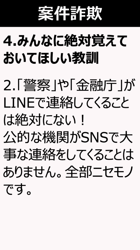 2.「警察」や「金融庁」がLINEで連絡してくることは絶対にない!