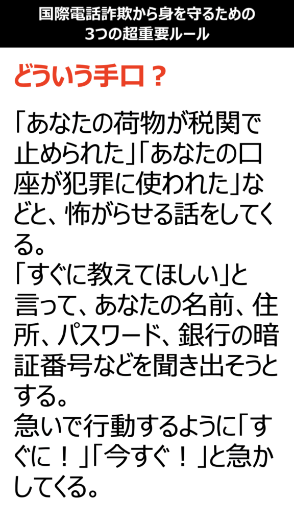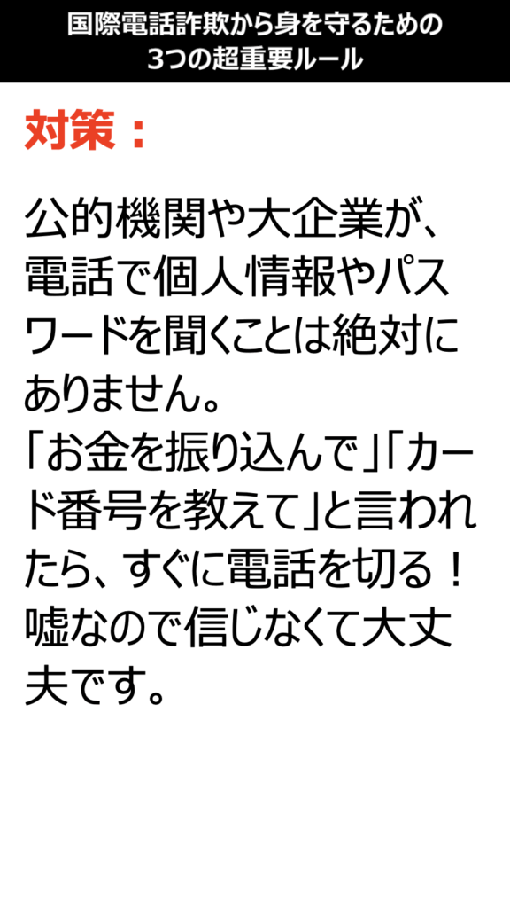 国際電話詐欺から身を守るための3つの超重要ルール:資料