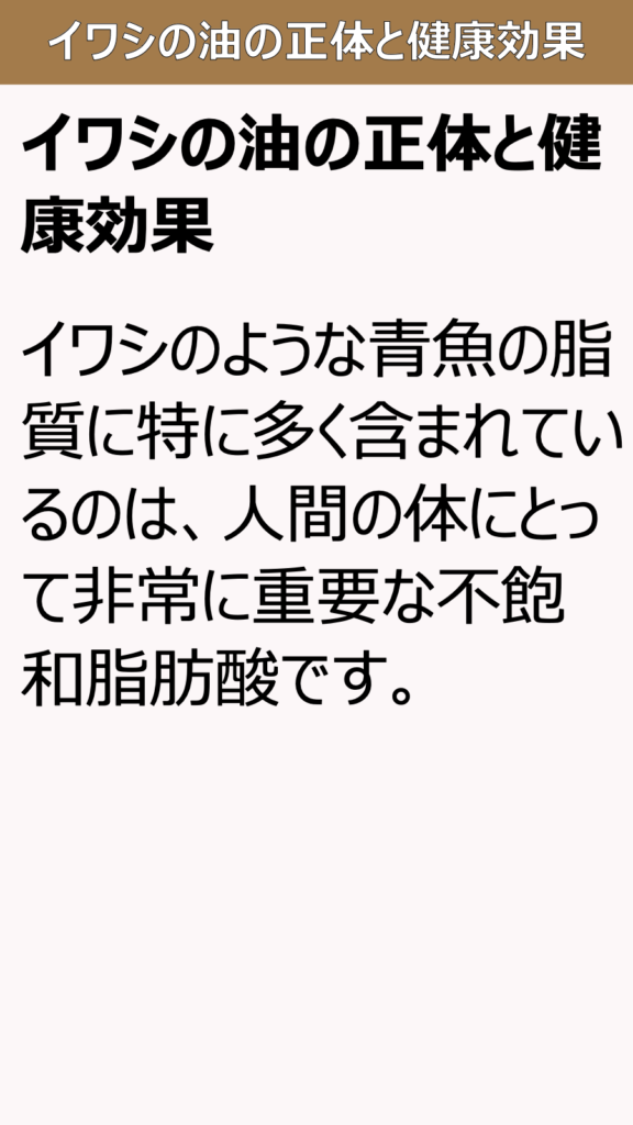 🐟 イワシの油の正体と健康効果、イワシのような青魚の脂質に特に多く含まれているのは、人間の体にとって非常に重要な不飽和脂肪酸です。