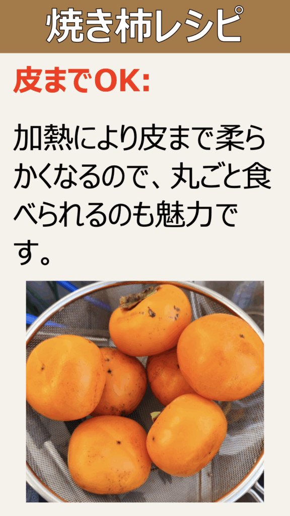 4.時間: 10分ほどが目安ですが、柿の大きさやむれ具合を見て調整します。