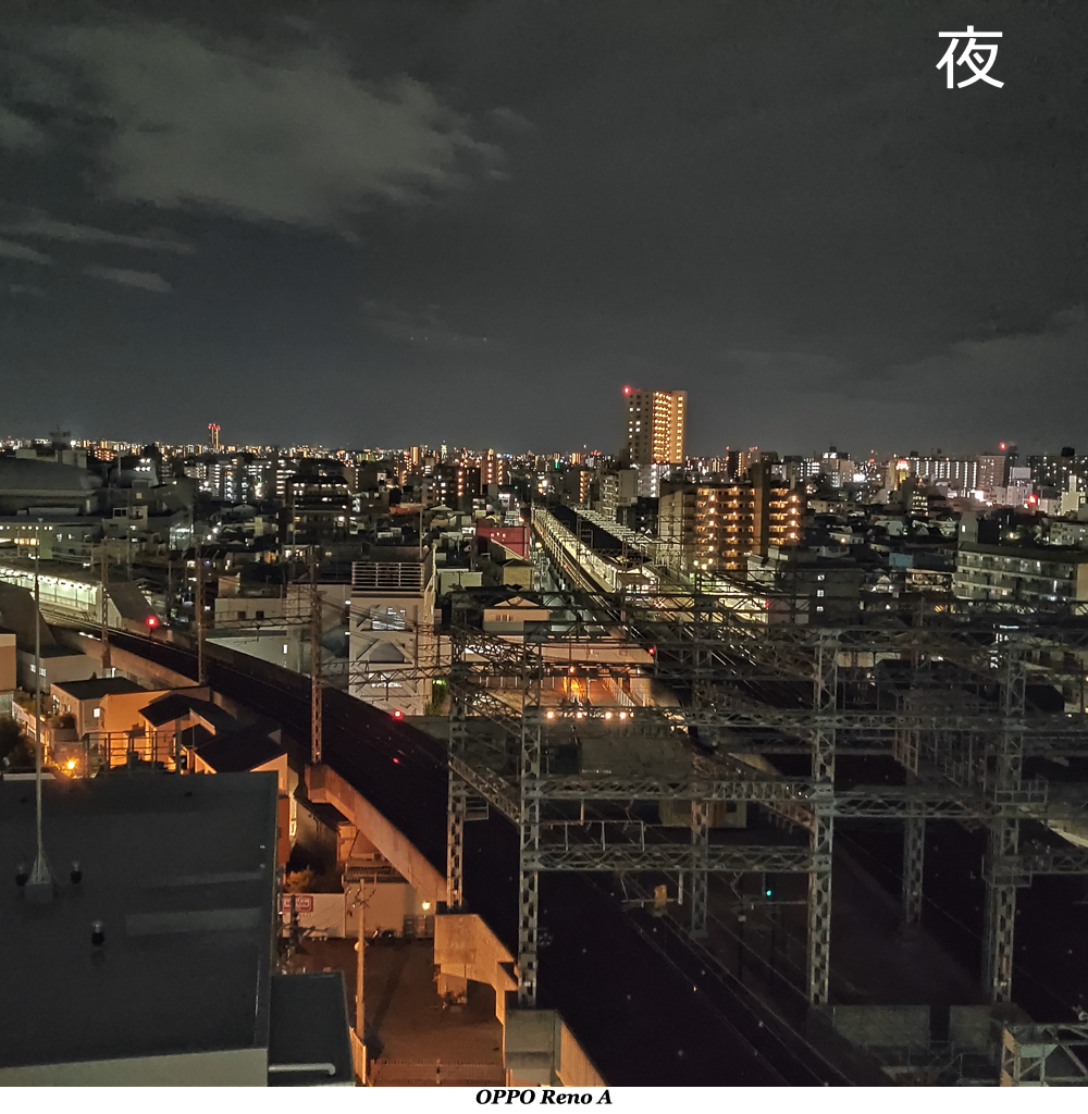 OPPO Reno Aの夜景モードの効果は一目瞭然です
