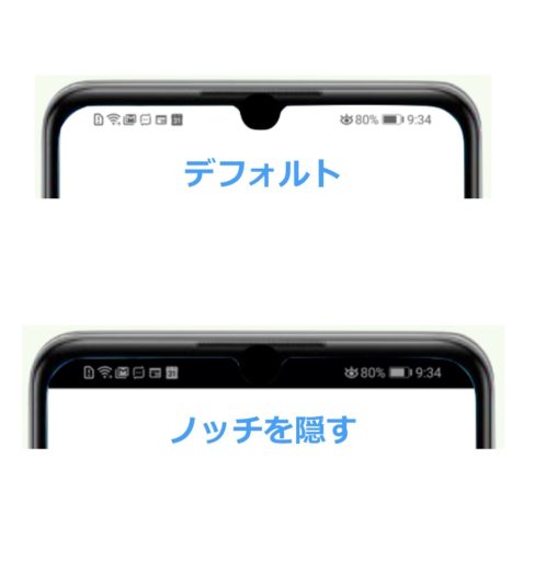 Huawei P30 lite ではノッチの有無を切り替えられます