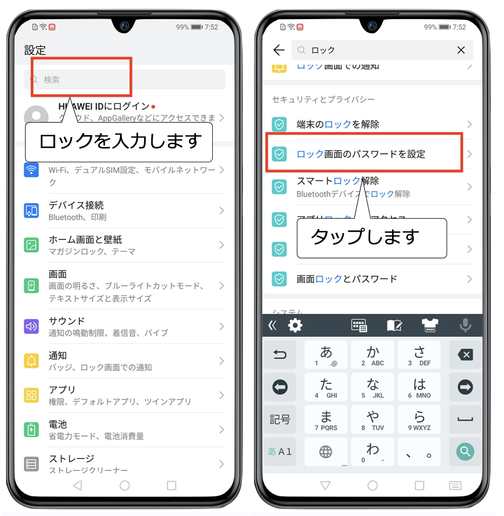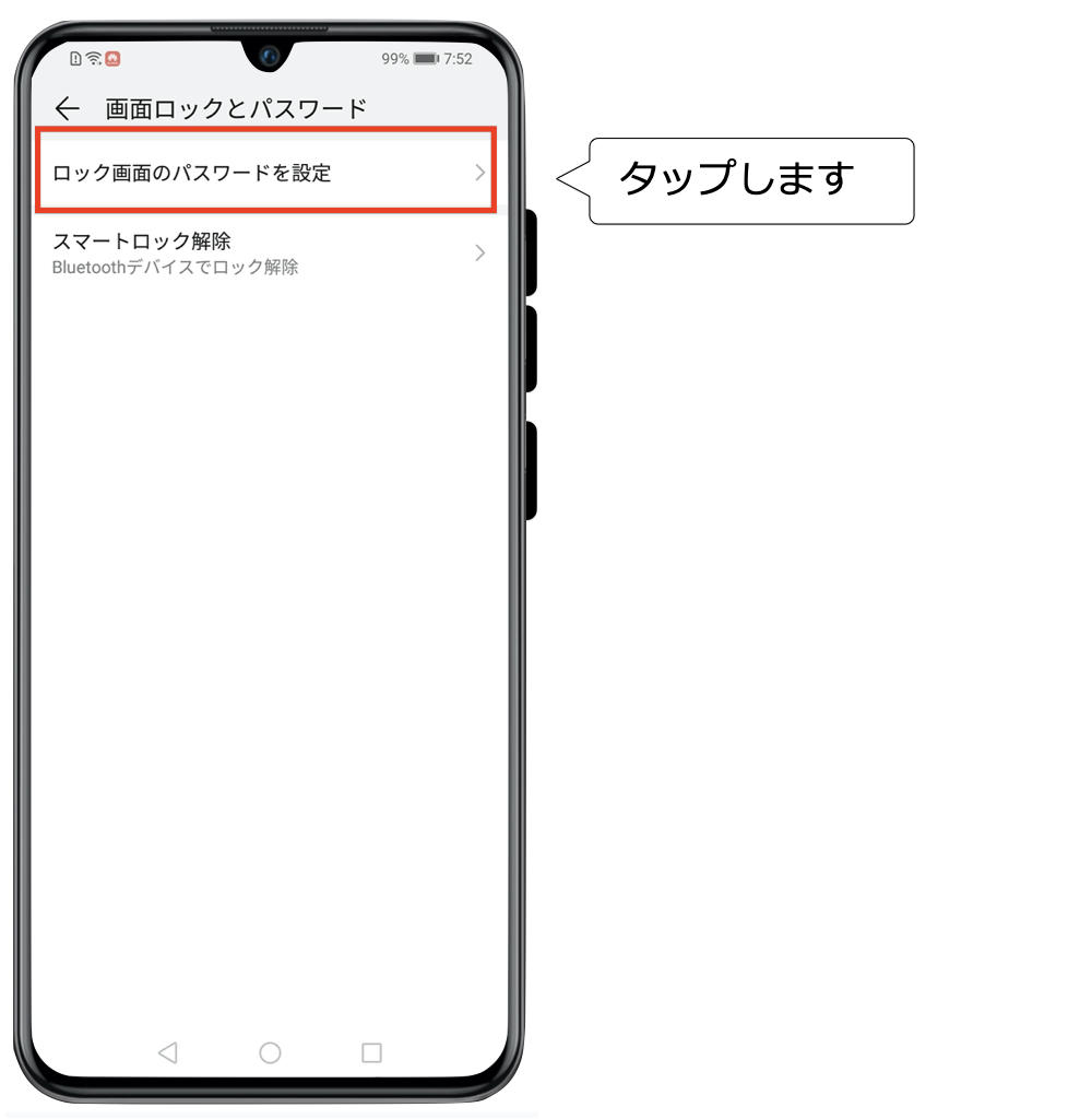 ロック画面のパスワードを設定