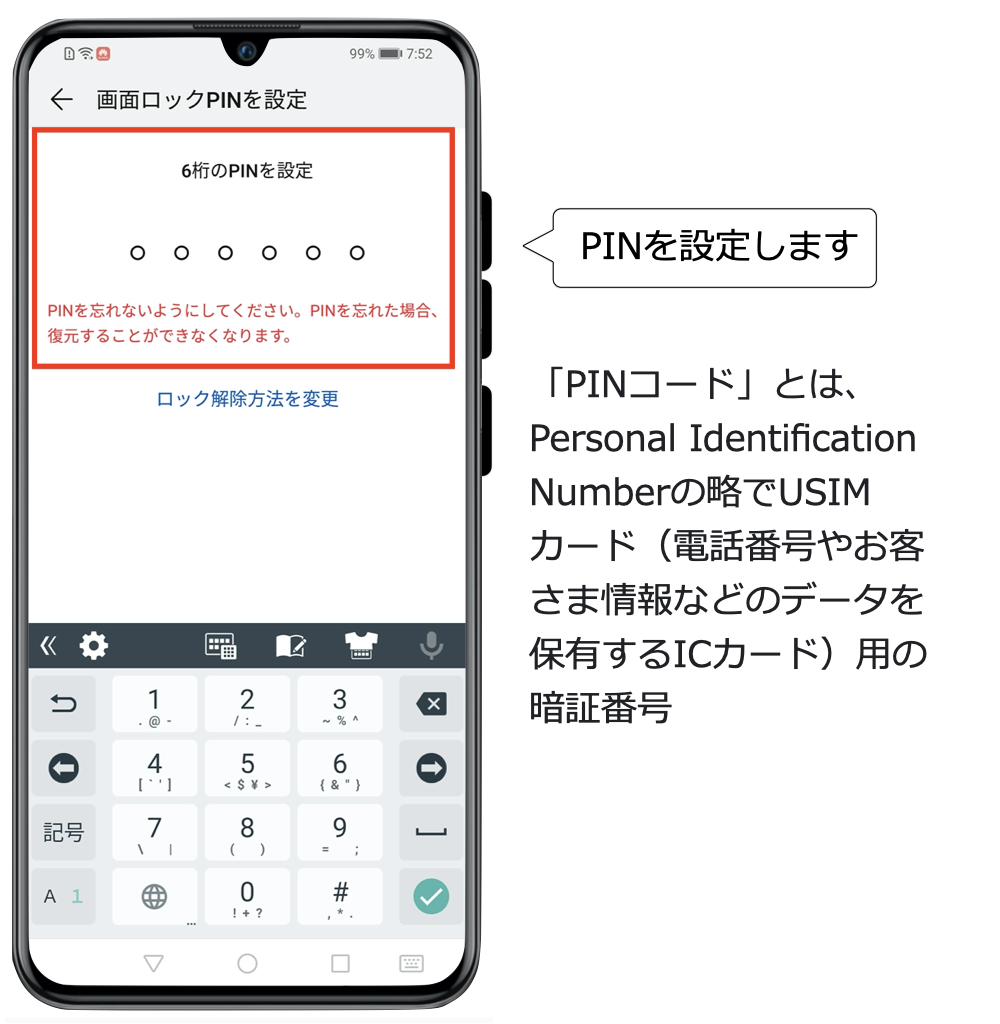PINコード入力でアンロック