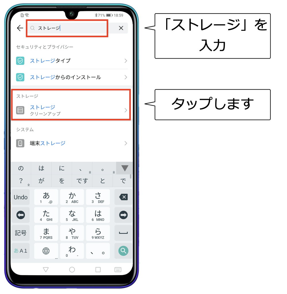 Huawei Nova lite 3+のストレージの残容量(余裕)を確認する方法です